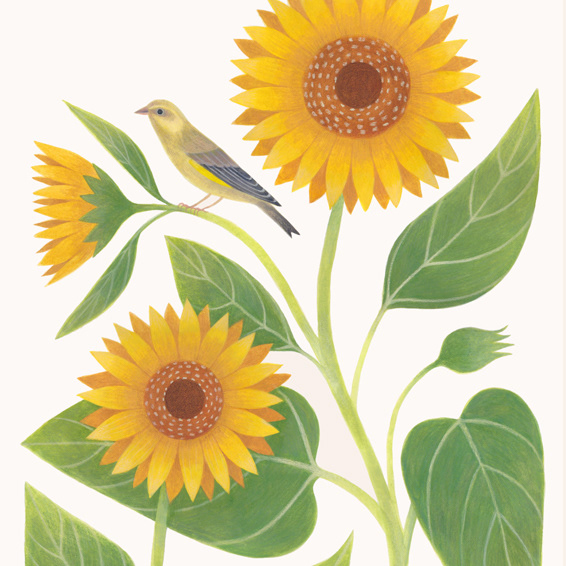 Floral illustration by Laura Middleton with peony, sunflower and crocuses.